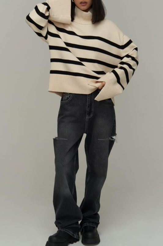 EMMANUELLA - Cream Striped Boyfriend Sweater